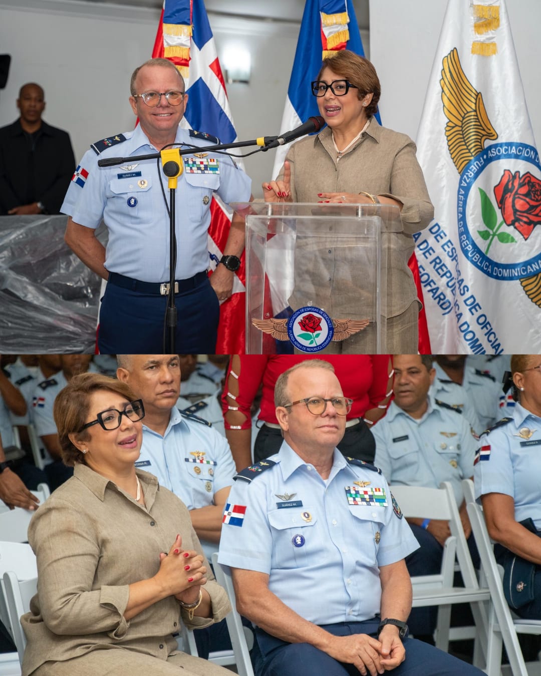 Estuvieron presentes la coronel médico Celia Gómez, FARD, directora de la Dirección de Sanidad Aérea; la coronel médico Julia Brito Cotes, FARD, subdirectora; el capitán médico Manuel Arias, FARD; y la primer teniente geriatra Alexandra Castillo, FARD, encargada del CAPSARFARD.